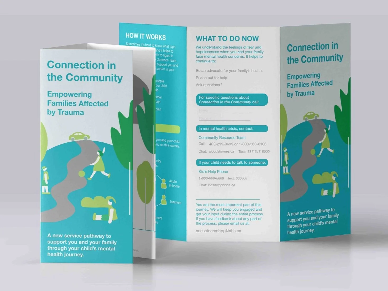 The goal of this project was to develop print materials for an Alberta Health Services program that provides streamlined care to families affected by trauma. The program connects patients' support systems and allows them to collaborate and create customized healthcare plans.